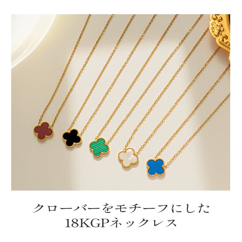 クローバーネックレス クローバー ネックレス サージカルステンレス 金属アレルギー フラワー 花 お花 オニキス風 シェル風 レディース