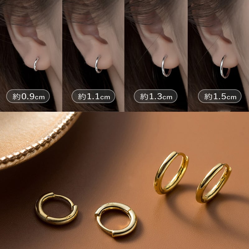 ピアス 金属アレルギー フープピアス つけっぱなし 小さめ フープ 小さい 中折れ 金アレ 小さいピアス シンプル 小ぶり 極小 ニッケルフリー ミニピアス レディース シルバー ゴールド キャッチレス シルバー925 大きめ 細め きれいめ 【両耳用・2個売り】