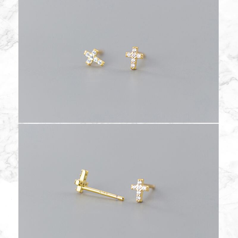 ピアス 十字架 クロス 一粒 ジルコニア つけっぱなしピアス 小ぶり 小さめ シンプル silver925 シルバー925 18k 18金 コーティング スワロフスキー 小さい つけっぱなし 金属アレルギー シルバー ゴールド 小さいピアス 一粒ダイヤ 【両耳用・2個売り】