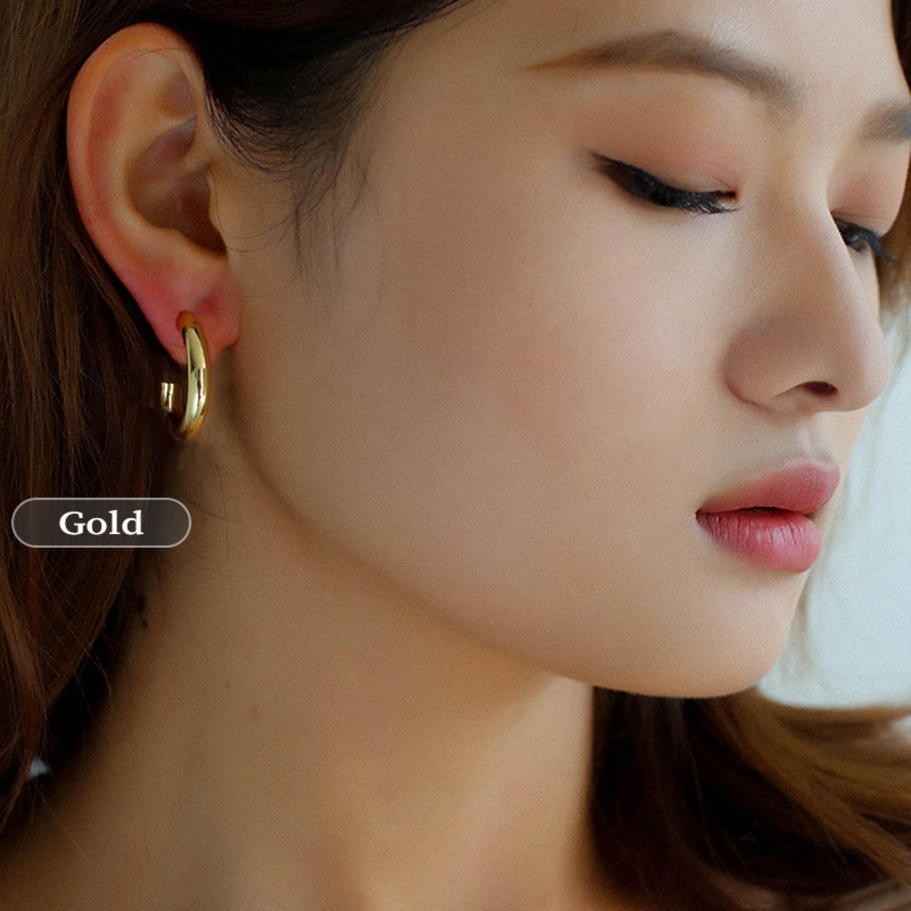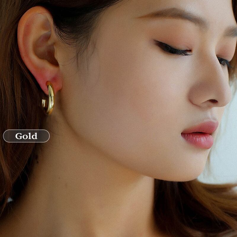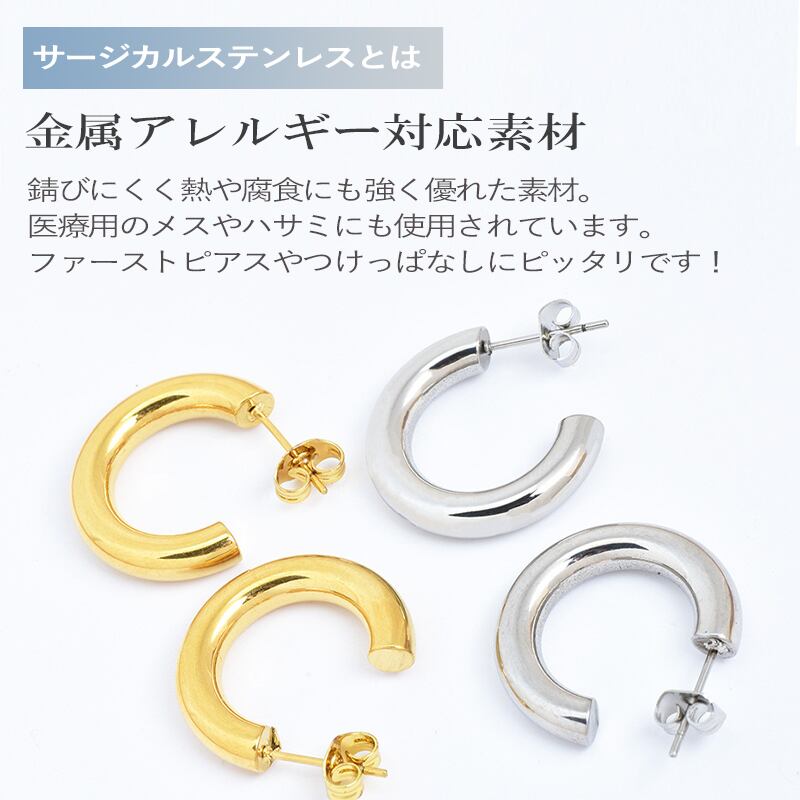 サージカルステンレス ピアス 金属アレルギー C型 太い 太め 大きい 大ぶり カール 半月 リング 輪 G型 半円 わっか 輪っか C字 スタッドピアス ステンレスピアス 医療用サージカルステンレス 金アレ フープピアス 316lピアス 韓国【両耳用・2個売り】