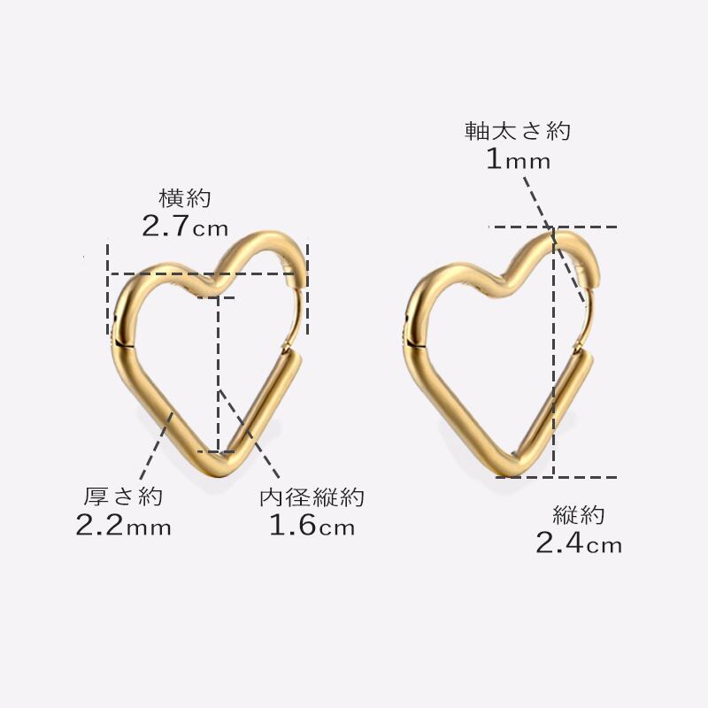 ピアス ハート フープ ハートフープ ハートピアス サージカルステンレス 金属アレルギー ステンレスピアス 医療用サージカルステンレス ゴールド シルバー ブラック 大きい 大ぶり 大きめ ファーストピアス 金アレ つけっぱなし【両耳用・2個売り】