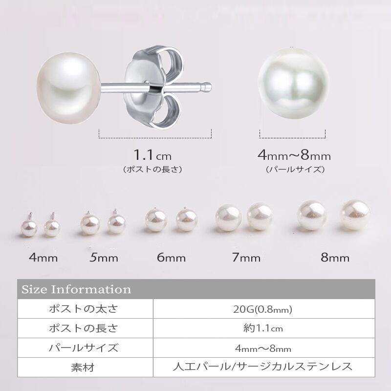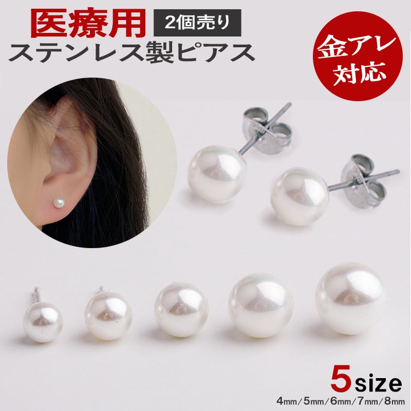 パールピアス ピアス パール 金属アレルギー 真珠 サージカルステンレス ステンレス 医療用サージカルステンレス 医療用ピアス 316lピアス シンプル 金アレ 大粒 一粒 小粒 小ぶり 大ぶり 冠婚葬祭 卒業式 スムースパールピアス【両耳用・2個売り】